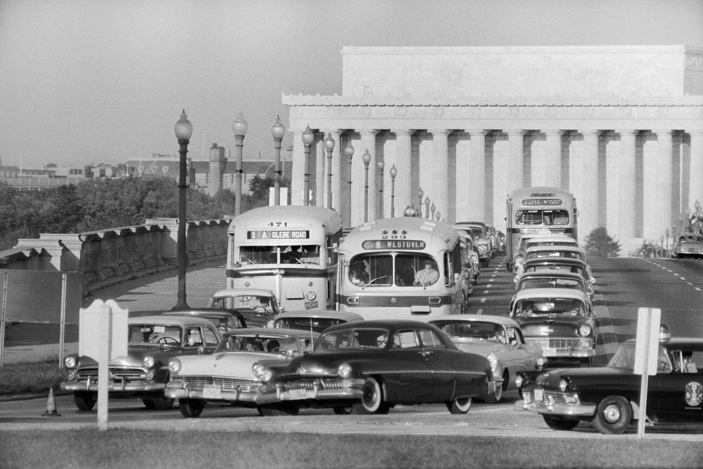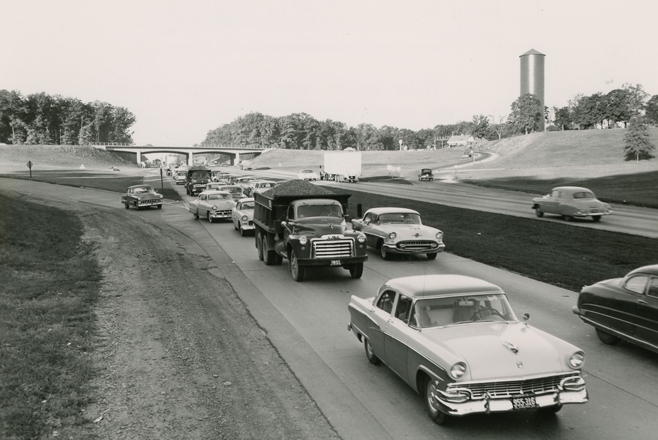 Discussions began in the late 1950s for major transportation projects like Interstate Route 66 and the Metro subway system, though these were completed much later. Improvements were also made to existing infrastructure. For example, the Courthouse Road bridge on Arlington Boulevard, originally built in the early 1950s, was slated for replacement, and plans included adding dedicated acceleration/deceleration lanes to improve traffic flow and safety. The dramatic increase in traffic volume and the beginning of discussions about major highway projects like I-66 showed Arlington’s rapid adaptation to the automobile as the primary mode of transport. This shift shaped urban planning and the need for new road infrastructure.