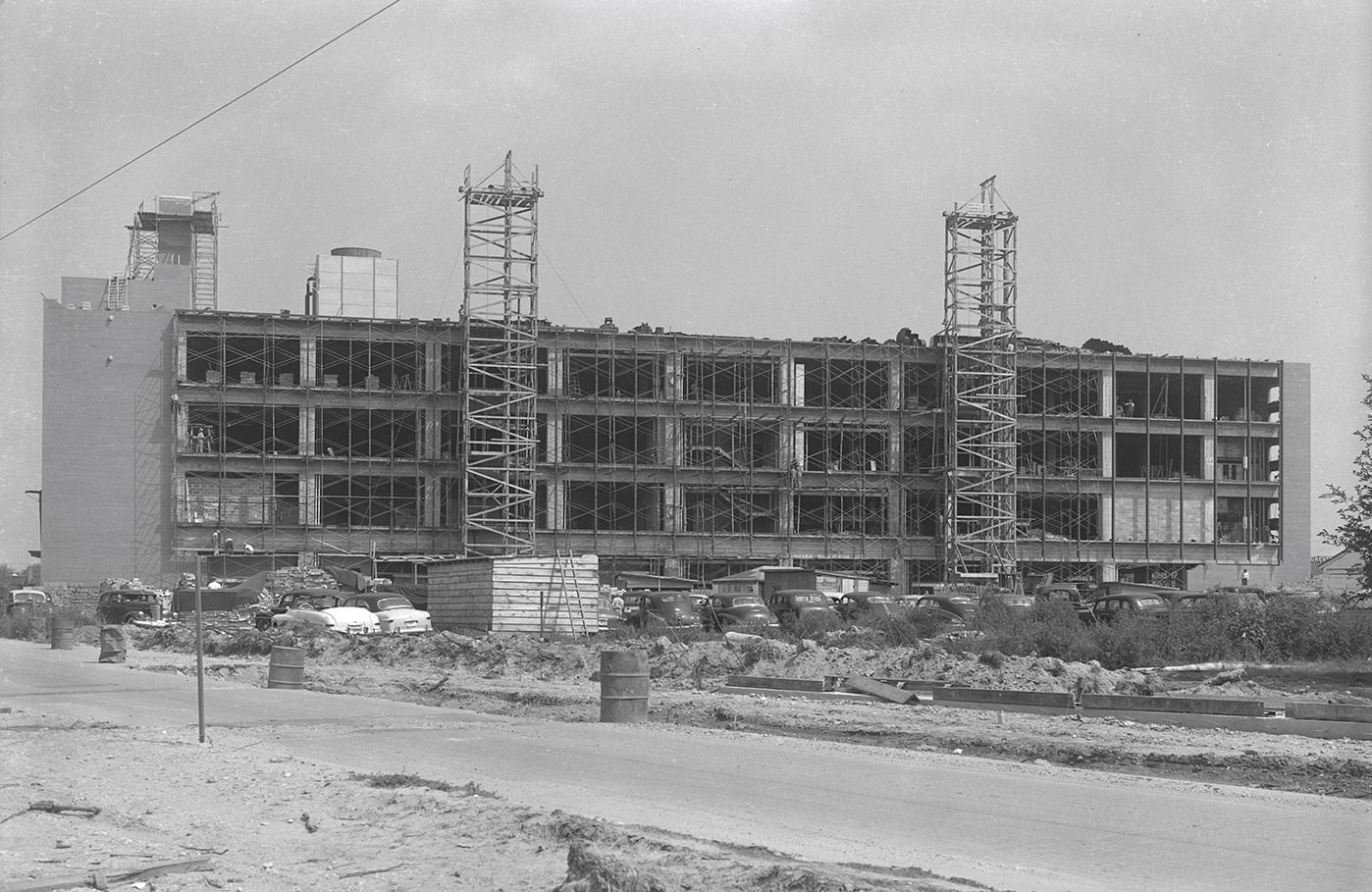 Arlington Hospital, which opened as a 100-bed facility in 1944, embarked on a major expansion plan in the 1950s. The first phase, a three-story South Wing, opened in 1953, adding 77 beds and expanded laboratory facilities. The second phase, a three-story North Wing, opened in July 1957, adding 70 more beds and new, larger emergency, X-ray, and outpatient facilities, bringing the hospital’s total capacity to 250 beds.