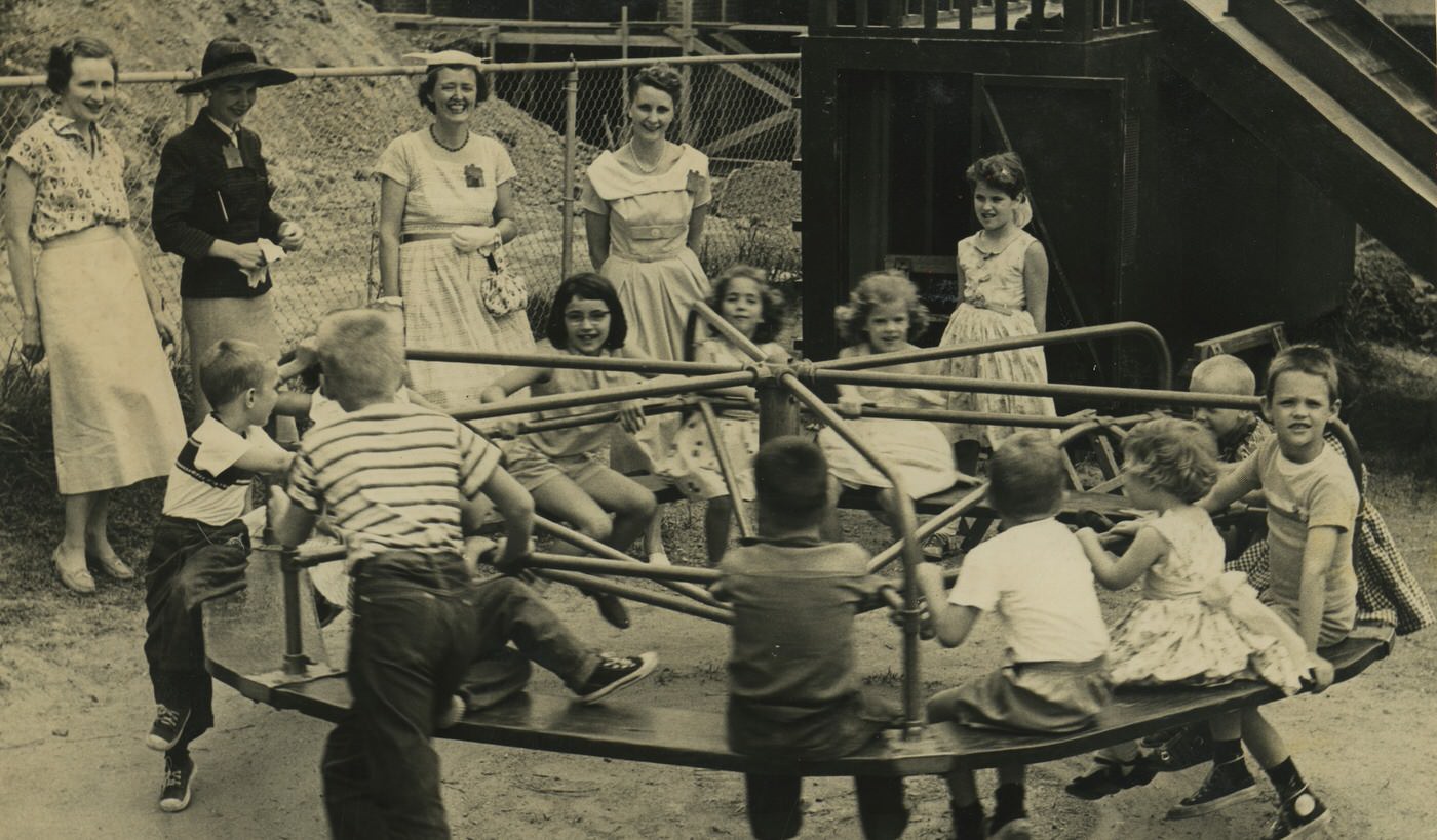 Arlington County actively developed recreational facilities during the decade. The Department of Parks and Playgrounds was established in 1944. In 1951, the Henderson House was converted into the Arlington Recreation Center, the county’s first recreation center. The first senior adult program in Virginia, the Silver Age Club No. 1, was established in Arlington in 1954. Another key facility, the Lubber Run Community Center, welcomed its first guests in 1956. By 1959, the Parks and Recreation Department sponsored its first free outdoor performance series at Lubber Run Park and started summer day camps for children.