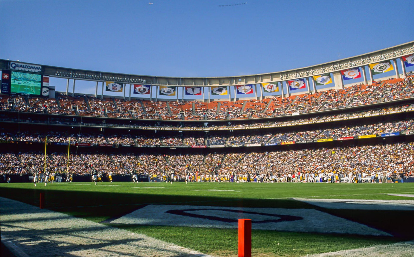 Qualcomm Stadium during a kickoff in an NFL game between the Pittsburgh Steelers and the San Diego Chargers on December 24, 2000 in San Diego